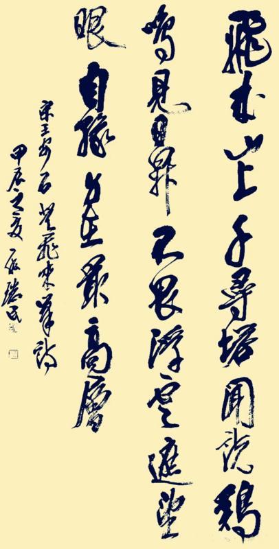 借對張瑞民先生書藝的探討,拉拉雜雜寫了這么多感慨,借題發揮,以就教于瑞民和方家。瑞民書法一直求變不輟,這種精神值得稱贊,能走多遠,我們拭目以待,希望他體勢再開擴一些,布局再多些變化,筆性再硬朗一點,提按絞轉再有些個性特色,會更好。我相信市儈與小人大約不會成氣侯的,因為藝術的神性與他們是格格不入的。而坦蕩君子往往可以得繆斯青睞,沖過黑障之后,就會是黎明的霞光滿天!