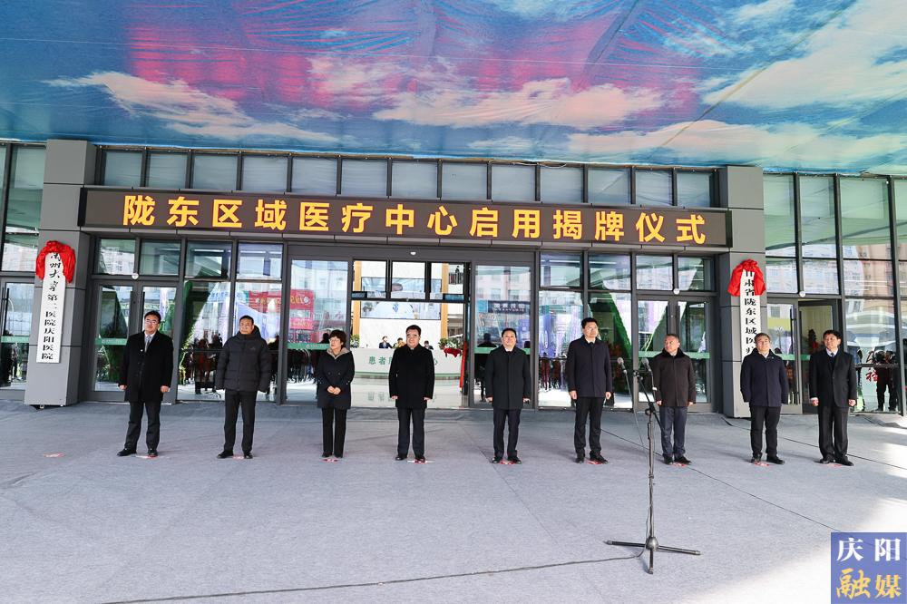 市委書記黃澤元與省衛生健康委副主任李清霞為“隴東區域醫療中心”揭牌。