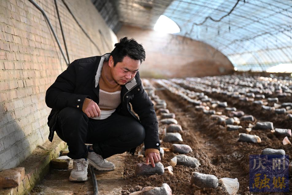 汪建軍在合水縣固城鎮董家寺村羊肚菌大棚內。