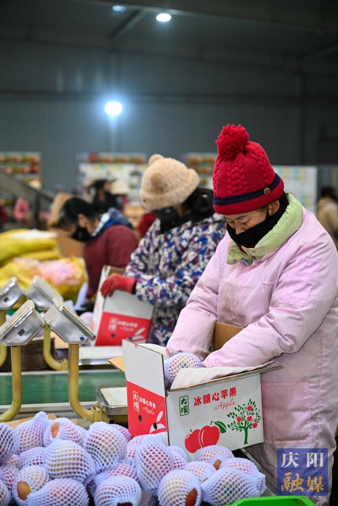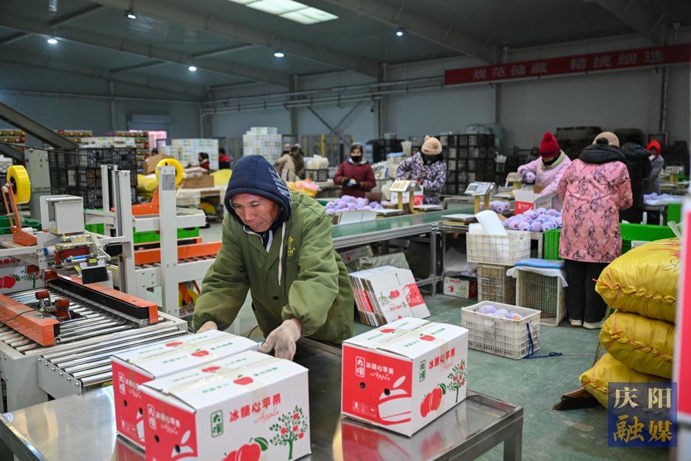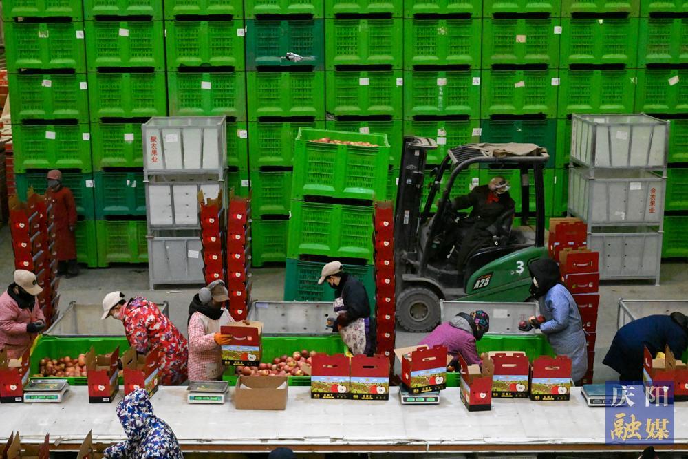 慶陽網訊(慶陽融媒記者 俄少飛 韓龍 劉萍凝 李浩)在寧縣金農農業扶貧開發有限公司,果庫一派繁忙景象。
