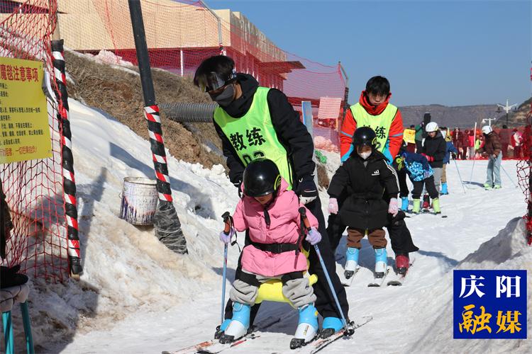 參賽選手在滑雪教練的指導下滑雪。慶陽融媒記者 陳思 攝