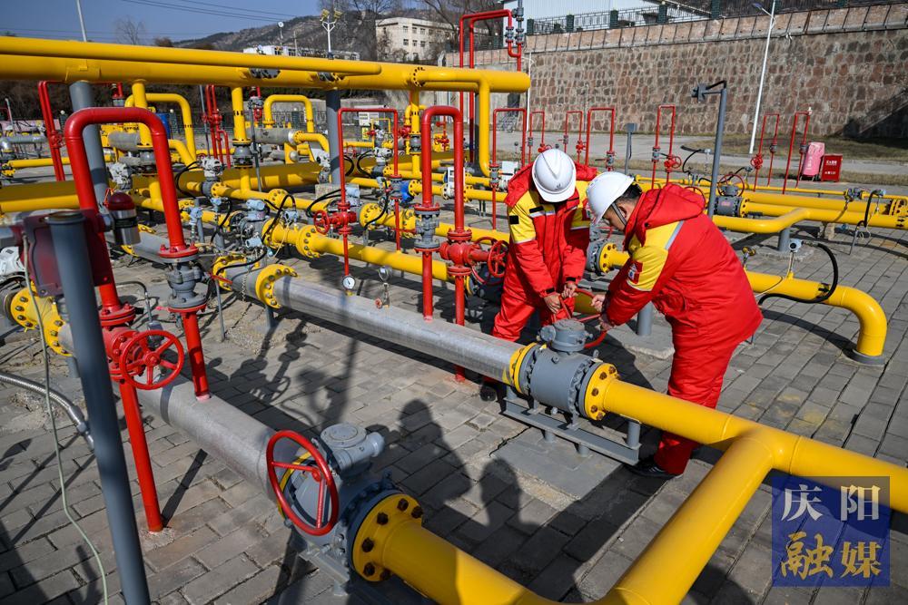 慶陽永慶慶城天然氣有限公司CNG母站,工作人員巡檢天然氣管道。