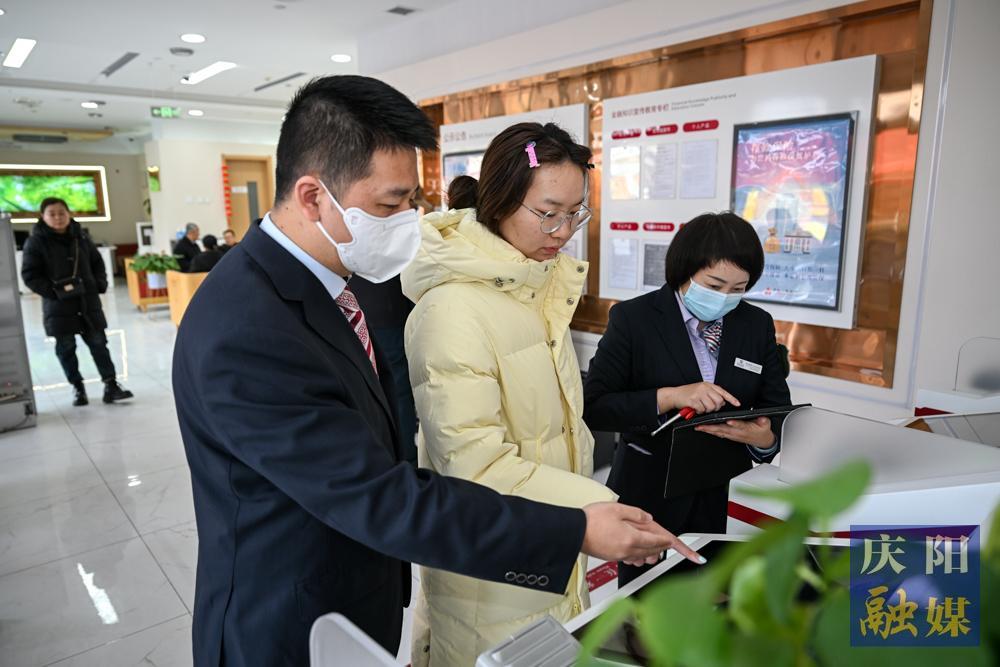 慶陽市政務服務大廳內(nèi),工作人員熱情接待前來咨詢辦事的群眾。