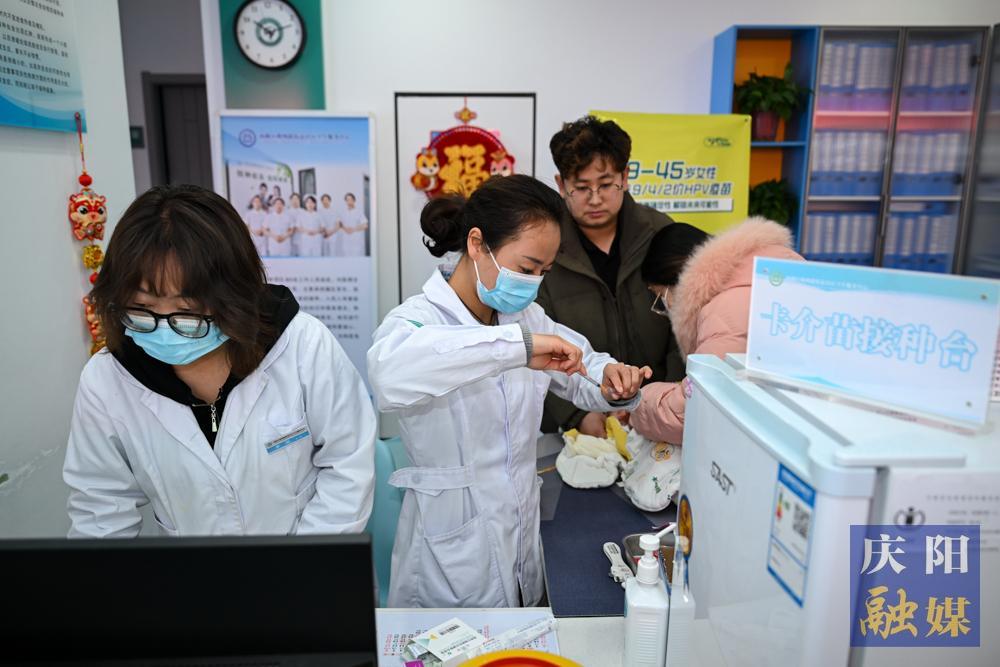 西峰區(qū)朔州路街道社區(qū)衛(wèi)生服務中心,醫(yī)務人員為小朋友們接種疫苗。