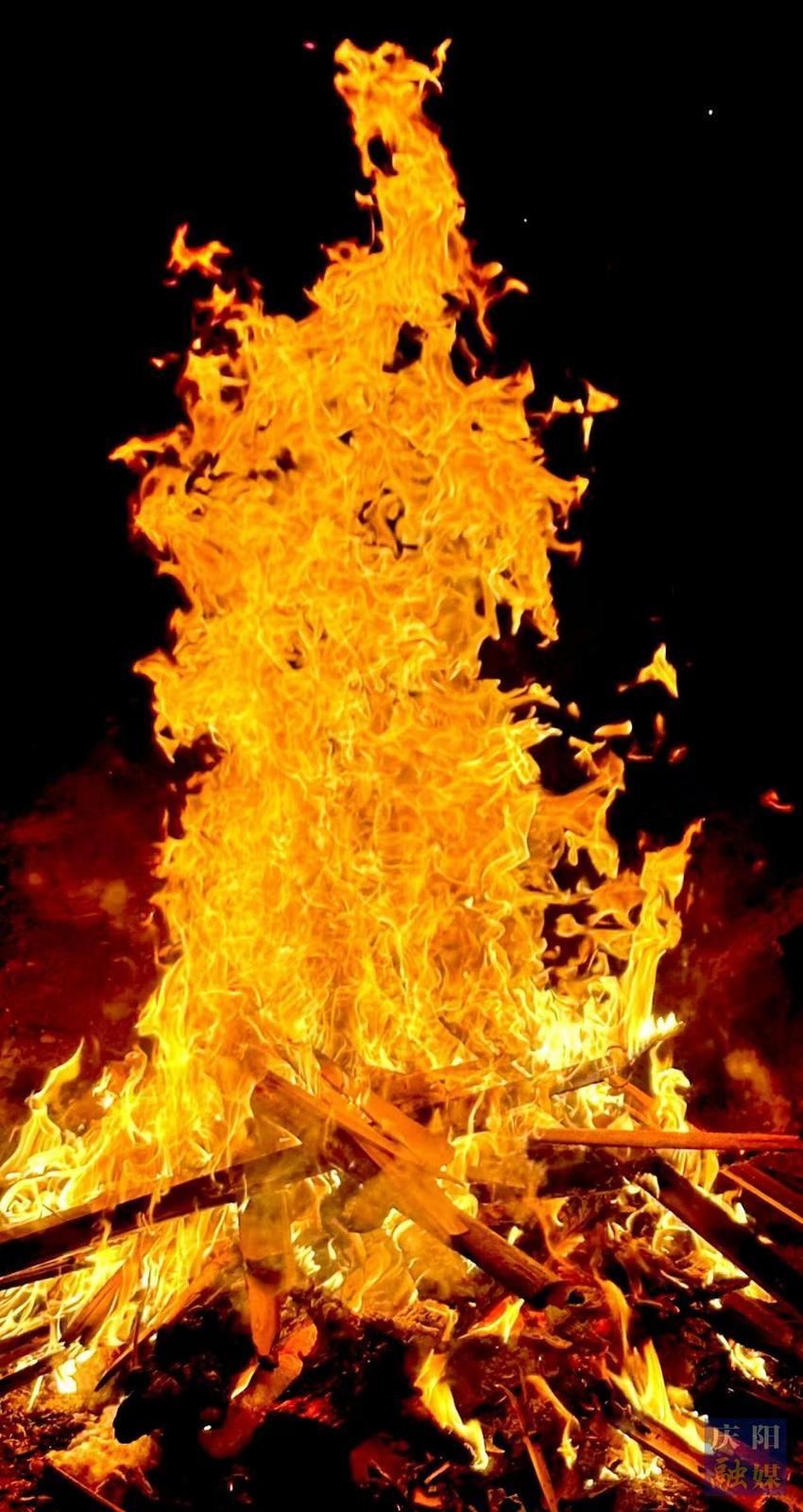 夜幕下,慶陽各地群眾點燃篝火,圍聚跳躍。熊熊火焰映紅夜空,寄托著人們對蛇年安康吉祥、五谷豐登的美好期盼。