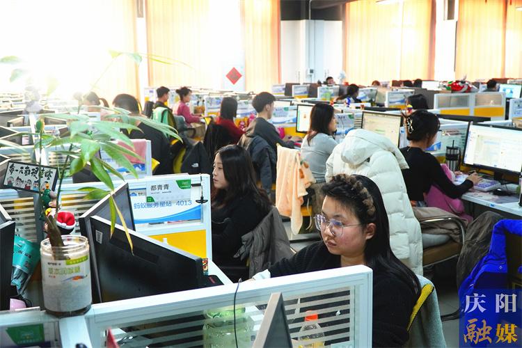 ▲環縣數字就業基地內,培訓師吳文娟指導工作人員開展業務。