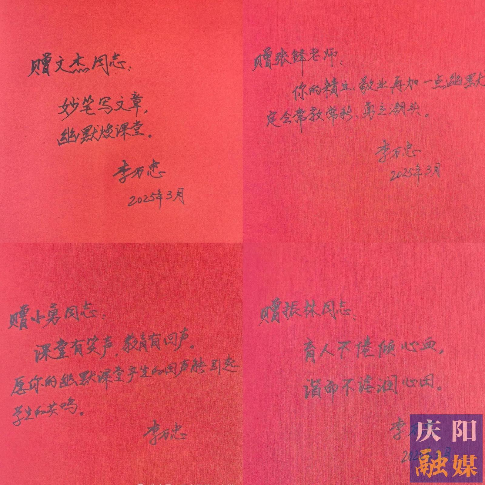 收到書籍的各位老師深受鼓舞,高一(15)班班主任宋楊濤捧著墨香猶存的贈書感慨道,“這份飽含深意的贈言,既是對我既往工作的肯定,更寄托著殷切的育人期許,精準切中了我工作中的困惑與成長訴求,為我后續班級管理提供了明確指引。我將以書中智慧為航標,深耕教育教學,助力每位學生成長,為學校發展注入更多活力。”