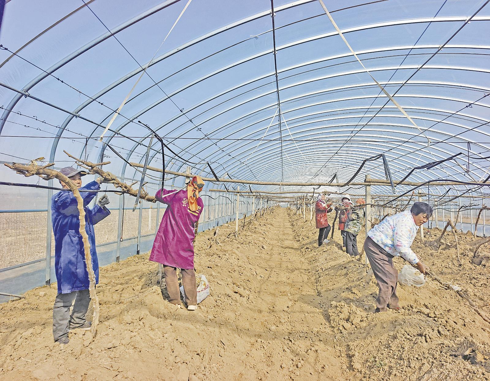 走進(jìn)位于馮堡村的慶陽元潤(rùn)緣種植養(yǎng)殖農(nóng)民專業(yè)合作社的葡萄種植基地大棚,一排排整齊的葡萄架映入眼簾,村民在技術(shù)員的指導(dǎo)下,積極開展葡萄藤整理上架等管護(hù)。