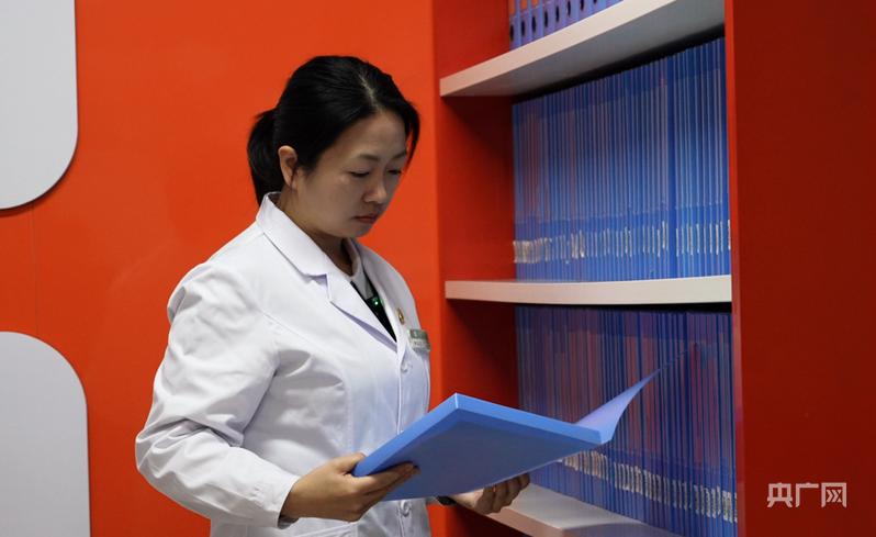 鄒亞蘭在翻看患者檔案資料(央廣網發 王文婷 攝)