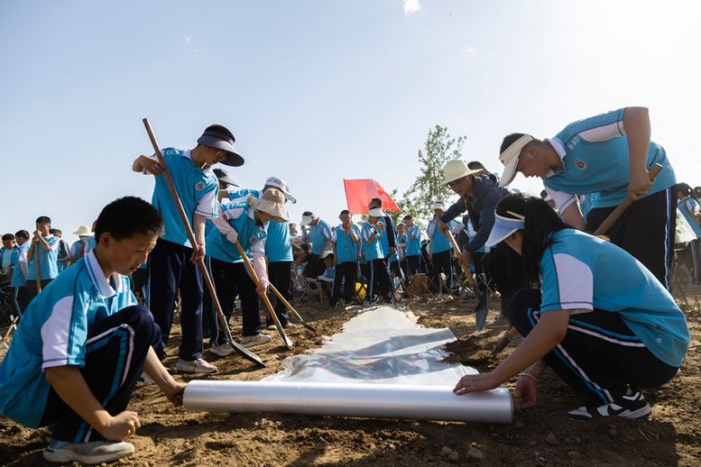 5月19日午后,驕陽似火,環城鎮城東塬村的田野上卻格外熱鬧。環城初中七、八年級兩千余名師生迎著烈日,徒步登上城東塬,在“共享菜園”勞動實踐基地開展了一場別開生面的研學活動。揮汗如土的翻地、熱火朝天的播種、默契協作的覆膜……同學們用雙手觸摸土地的溫度,在勞動中感悟“粒粒皆辛苦”的真諦。