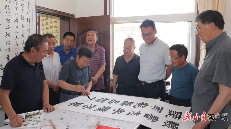 正寧縣永正鎮友好村在助餐點舉辦書畫交流活動。