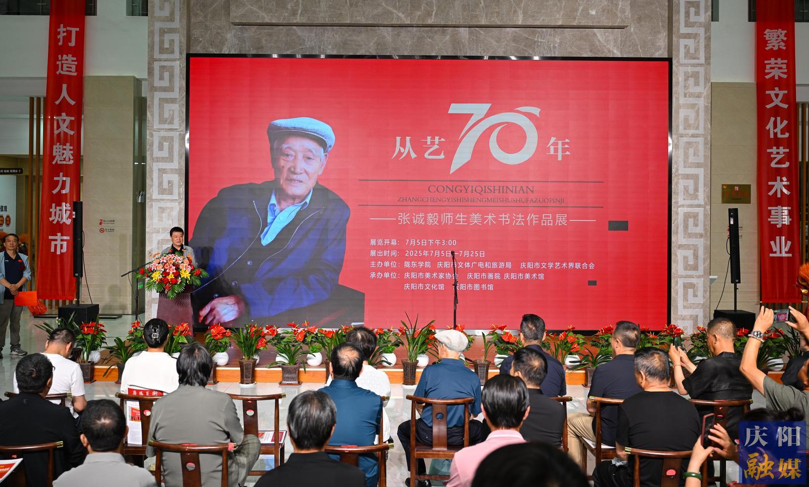 慶陽網訊(慶陽融媒記者 王志龍)7月5日下午,從藝七十年——張誠毅師生美術書法作品展在慶陽市美術館開展。此次展覽共展出書畫作品130多幅,集中展示了張誠毅先生及其學生多年來的藝術創作成果。展覽將于7月25日結束。