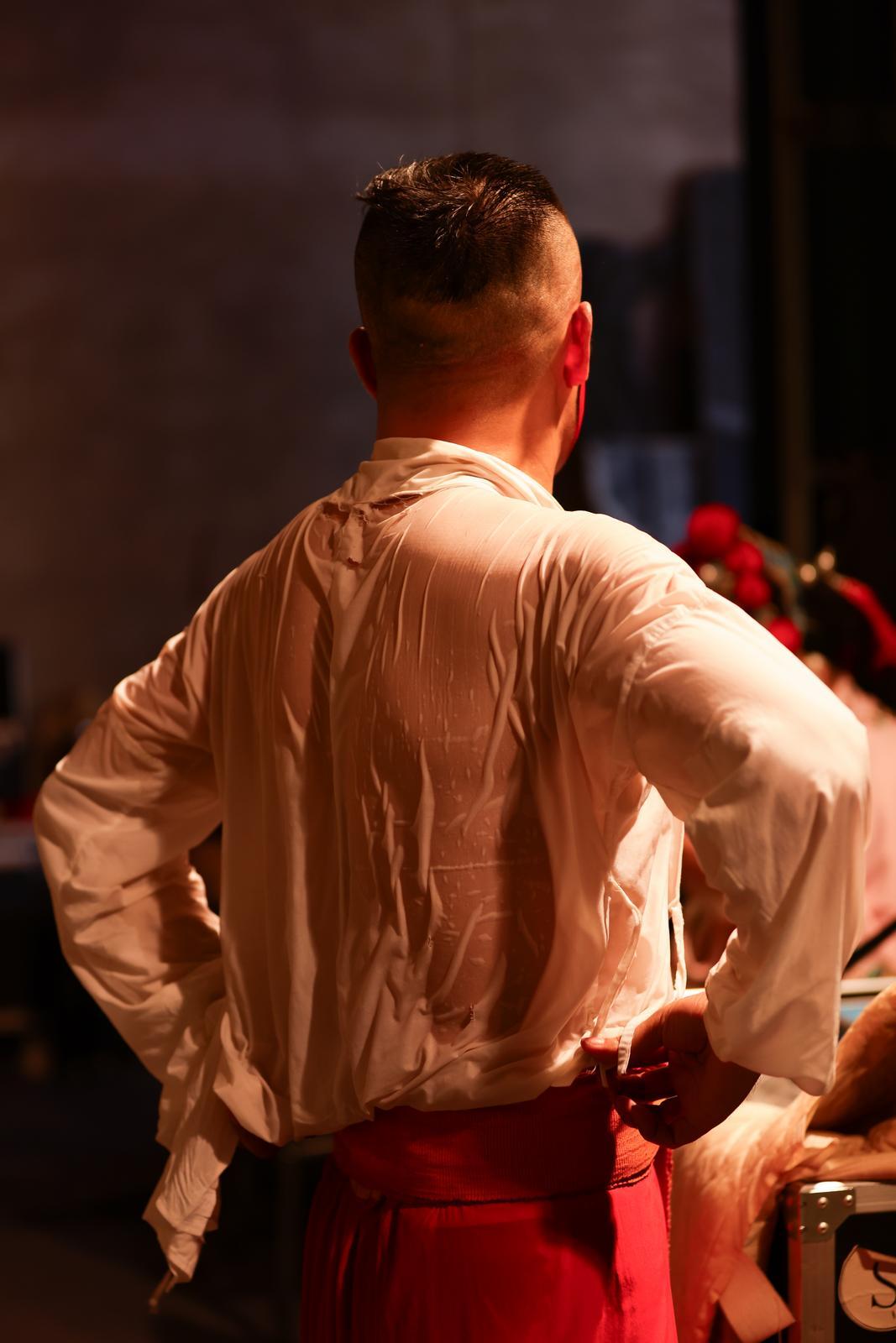 慶陽(yáng)隴劇院演職人員高溫天氣堅(jiān)持開展惠民演出活動(dòng),汗水浸濕戲服。
