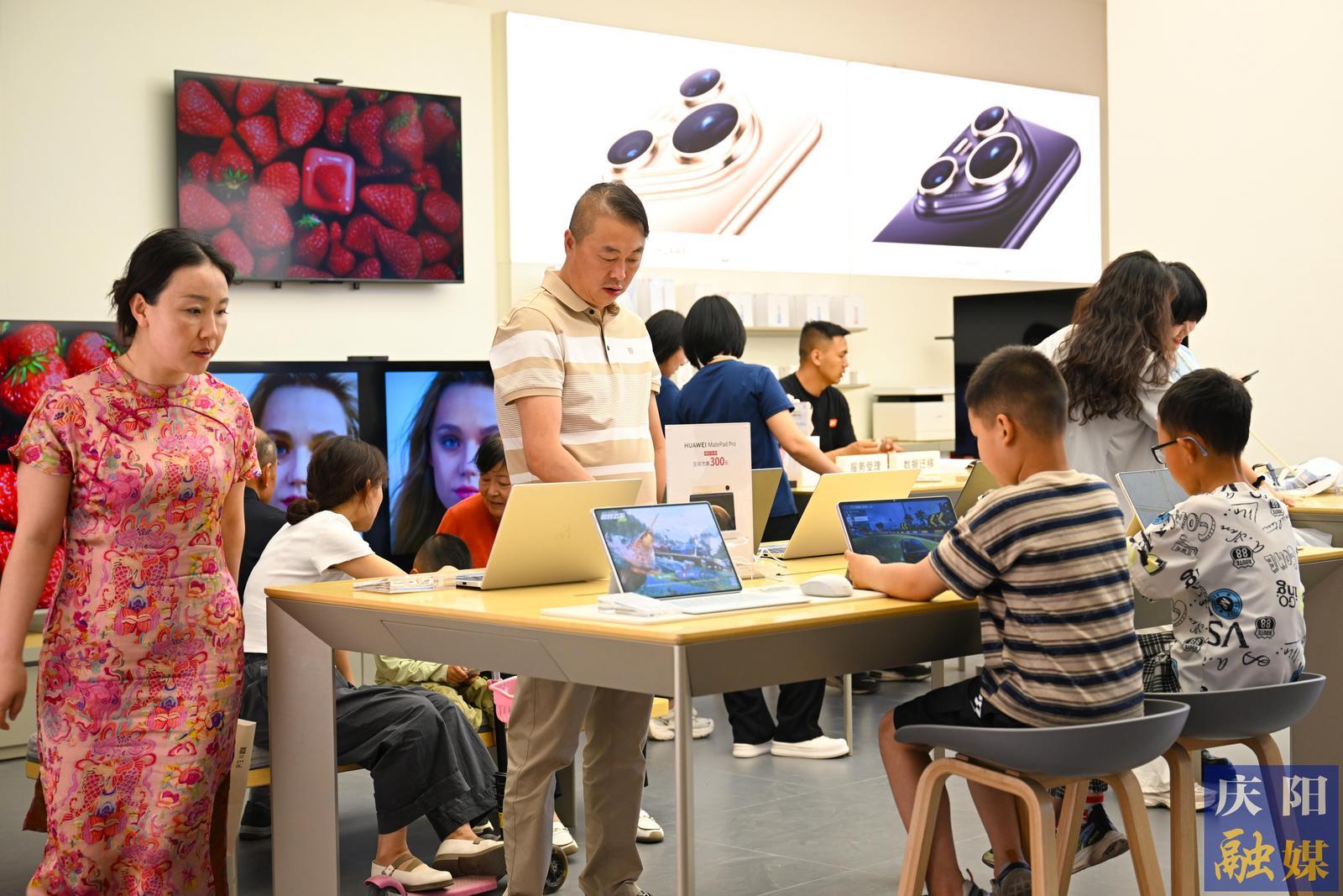 市民在專賣店體驗(yàn)、購(gòu)買數(shù)碼產(chǎn)品。