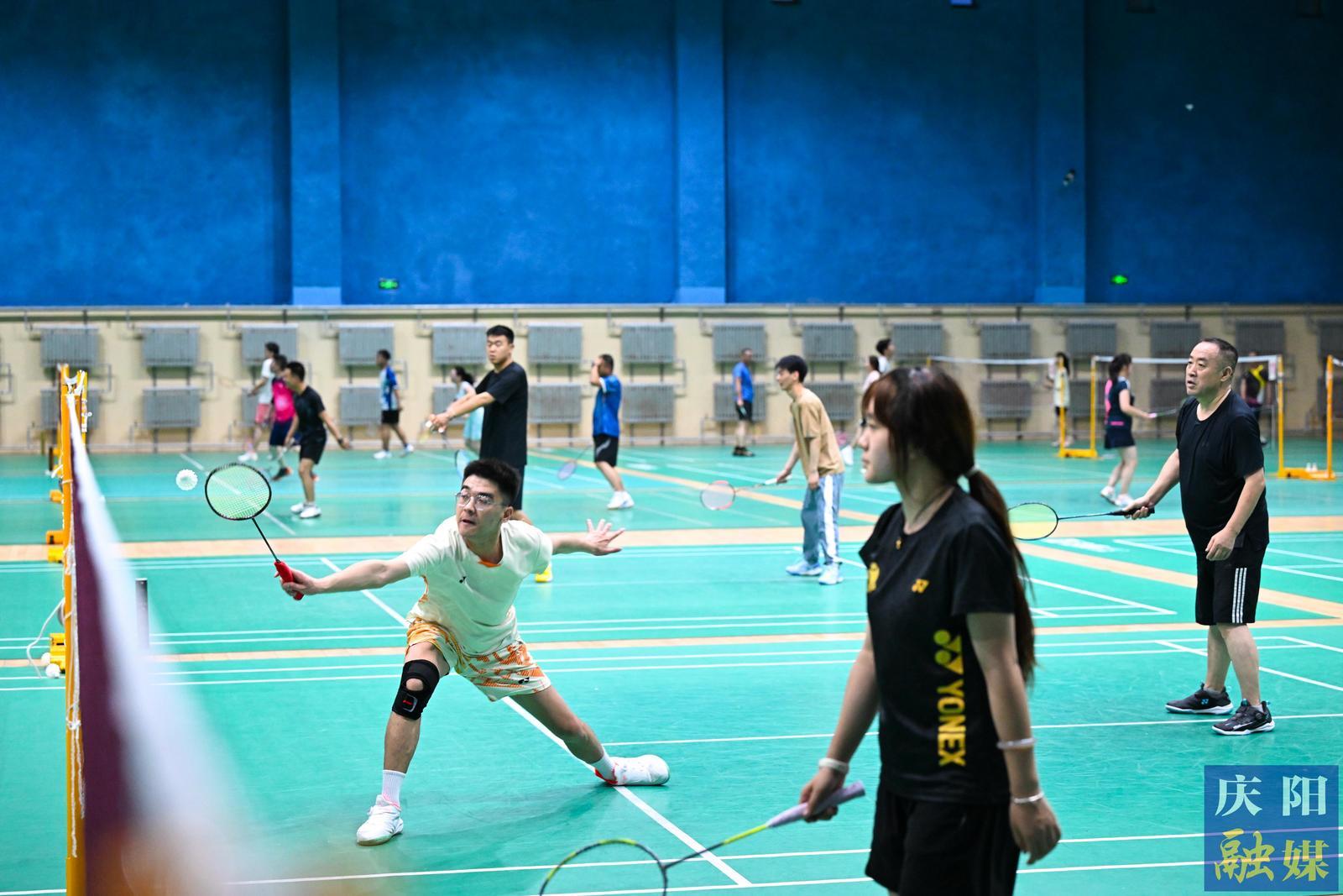 茶余飯后,市民在慶陽(yáng)市體育館羽毛球館揮拍鍛煉。