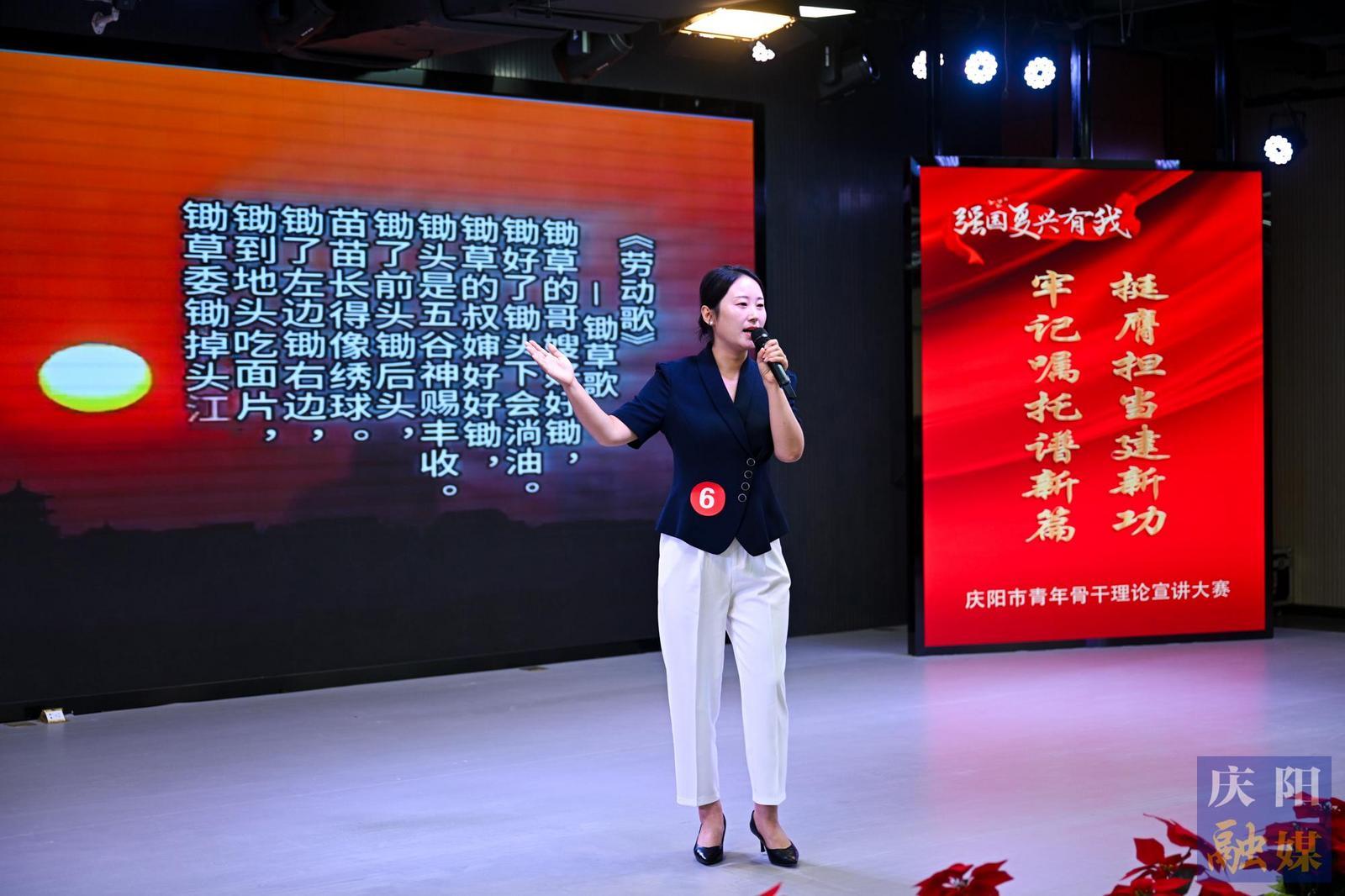 慶陽網訊(慶陽融媒記者 俄少飛)7 月 25 日,“牢記囑托譜新篇 挺膺擔當建新功”慶陽市青年骨干理論宣講大賽在慶陽市文化館舉行。本次大賽由共青團慶陽市委、慶陽市青年聯合會、慶陽市少工委主辦,來自全市 8縣(區)、7 個市直團組織和少工委的 15 名優秀青年代表參賽。