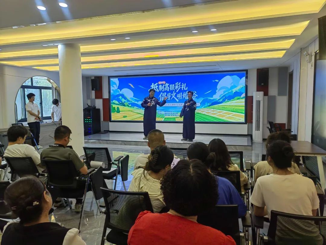 活動現場亮點紛呈。青年志愿者深情朗誦《訣別—高額彩禮的陰霾》,深刻揭示高額彩禮對家庭幸福的拖累;相聲《戲說彩禮》以幽默詼諧的語言,生動解構高額彩禮的積弊;小品《彩禮風波》則通過演繹家庭因彩禮引發的沖突與最終和解,生動詮釋了摒棄舊俗、踐行文明婚戀觀的重要性,引發觀眾共鳴。