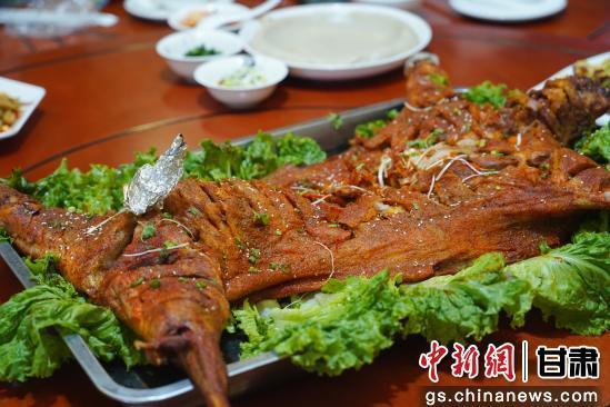 前一天已在這里預定“烤全羊”特色菜來招待山東朋友的張先生一家,此刻正在窯洞內等待著美食上桌。“咱們的羊肉都是采用來自縣北一帶的跑山羊,烤出來的肉質瘦而不柴、肥而不膩……從頭劃到尾,順風又順水;從左劃到右,健康又長壽。”伴隨著服務人員詼諧幽默的開羊祝福詞,一道色香味俱全的烤全羊也完美上桌了,大家不約而同的感嘆到:太有儀式感了。