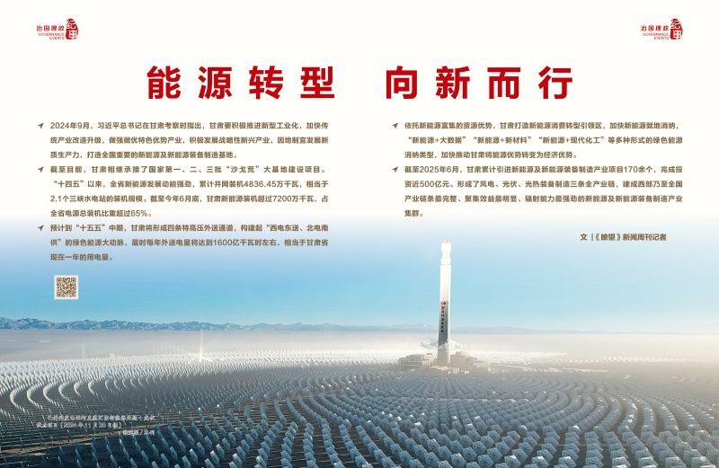 ◇依托新能源富集的資源優勢,甘肅打造新能源消費轉型引領區,加快新能源就地消納,“新能源+大數據”“新能源+新材料”“新能源+現代化工”等多種形式的綠色能源消納類型,加快推動甘肅將能源優勢轉變為經濟優勢。