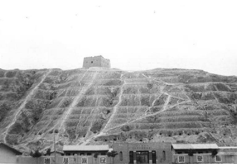 抗戰期間,蘭州防空司令部在皋蘭山四墩坪修筑的防空瞭望哨和警報器設置點。(資料照片)