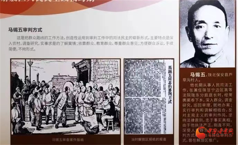 而馬錫五在擔任隴東分區專員兼任陜甘寧邊區隴東分庭庭長期間,始終堅持走群眾路線。他在辦案過程中,不是坐在辦公室看卷宗,老百姓要找馬錫五的時候,總是在田間地頭能找見他。