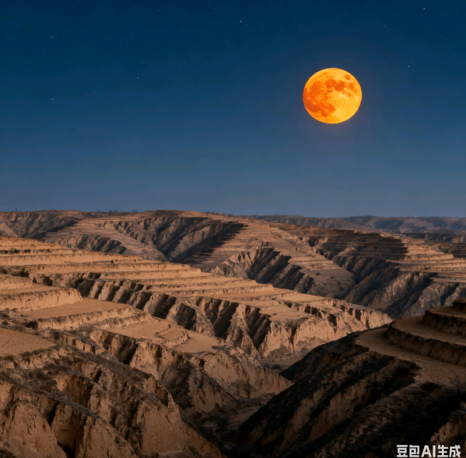 夕陽西下,麻王川的秋色達到極致。一抹晚霞,將整個山川染成金紅、橙黃、絳紫,絢麗奪目,給本就蒼茫的大地鍍上了一層金光,溝壑間的陰影更加深邃,山塬的輪廓愈發分明。炊煙從農家院落中裊裊升起,在空中繪出柔和的曲線。歸巢的鳥兒掠過天空,留下清脆的鳴叫。農人扛著農具從田間歸來,腳步踏實而沉穩,他們的身影在夕陽下拉得很長很長,仿佛與這片土地融為一體。