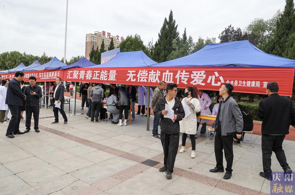 慶陽網訊(慶陽融媒記者 陳飛)9月16日,由合水縣衛健局、慶陽市中心血站主辦的“匯聚青春正能量無償獻血傳愛心”主題宣傳日暨團體集中獻血活動在樂蟠廣場舉辦。 全縣各鄉鎮、縣直各部門積極響應,黨員干部帶頭參與,廣大職工、市民和志愿者踴躍參與獻血,活動當日,共有195人完成無償獻血。