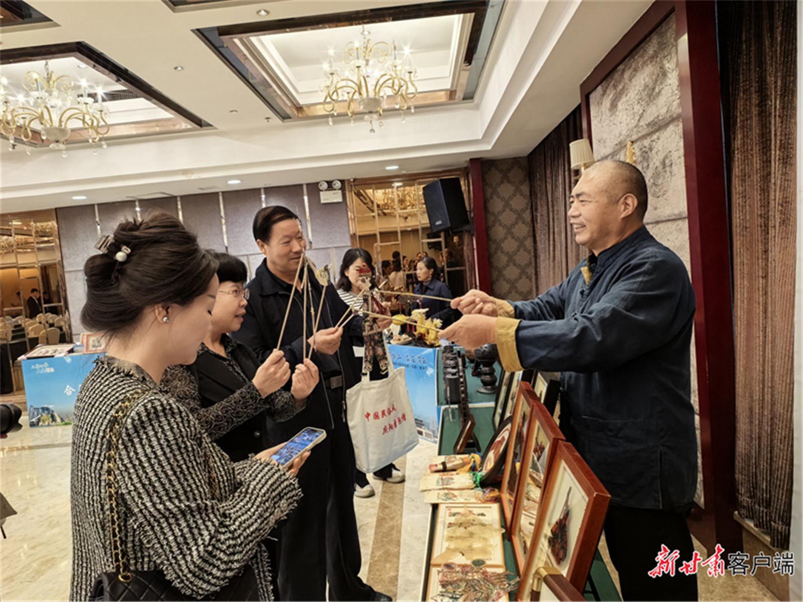 渭南市非遺代表性傳承人向慶陽市民展示華陰皮影。