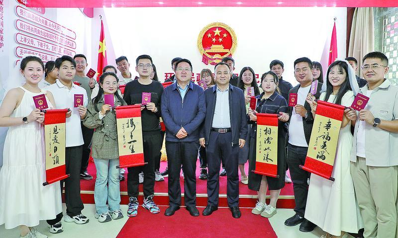環縣舉辦集體頒發結婚證活動。