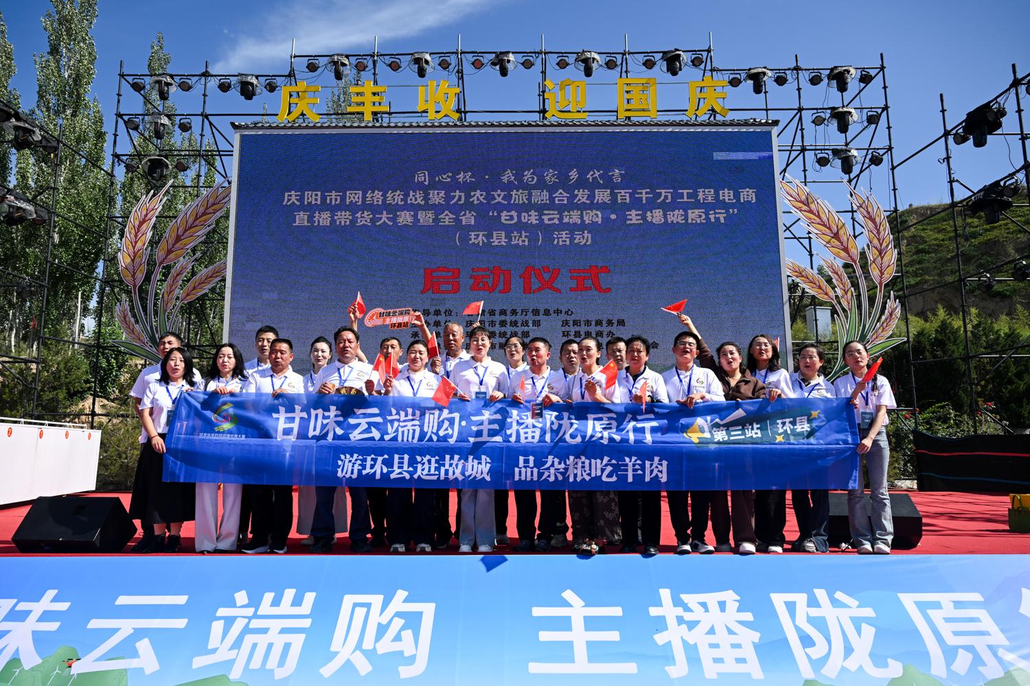 慶陽網訊(慶陽融媒記者 俄少飛)9月25日,慶陽市“同心杯·我為家鄉代言”網絡統戰聚力農文旅融合發展百千萬工程電商直播帶貨大賽暨全省“甘味云端購·主播隴原行”(環縣站)活動在環縣環州故城正式啟動。此次活動匯聚全省百強主播與本地電商達人,旨在通過直播電商新業態,為家鄉特色產品代言,助推慶陽農文旅產業融合發展。