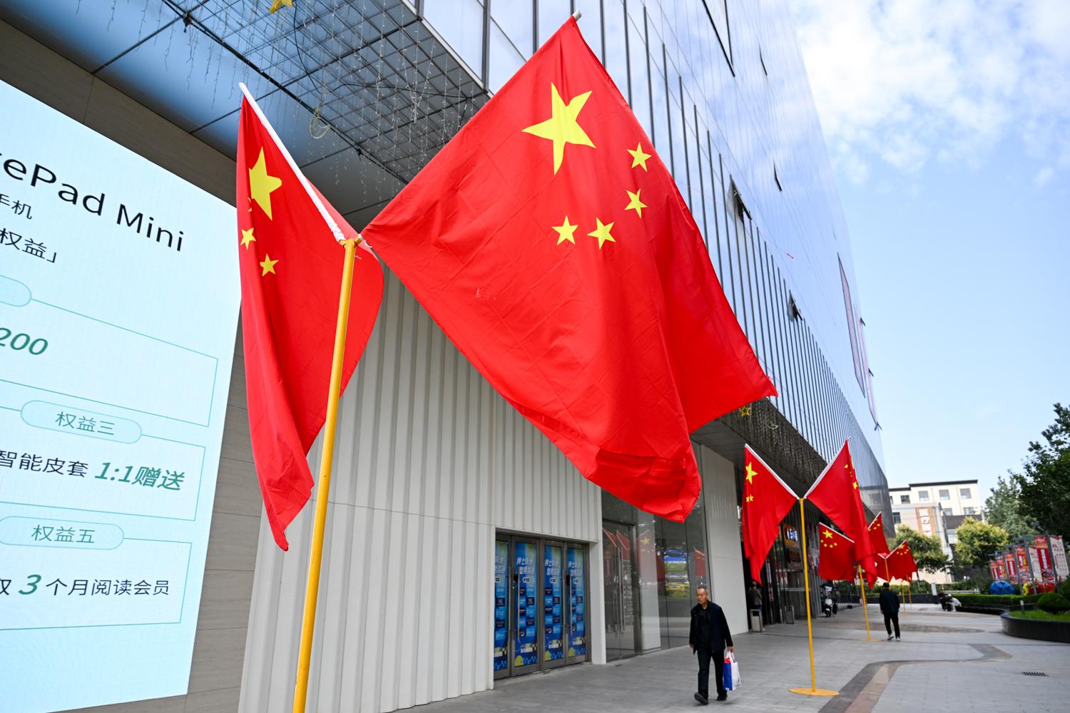 走在城區(qū)的主要街道,一面面嶄新的五星紅旗整齊地懸掛在路燈桿上。各大商場(chǎng)、臨街商鋪、居民小區(qū)也紛紛自發(fā)懸掛起國(guó)旗,為即將到來(lái)的節(jié)日增添了喜慶氛圍。