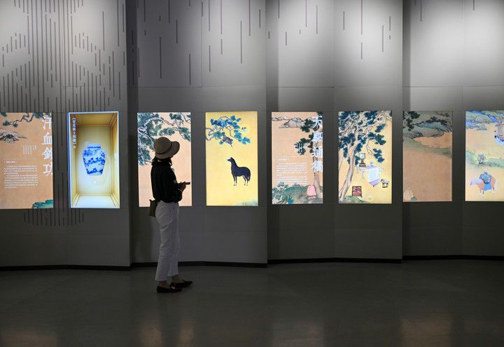 2025年6月3日,觀眾在故宮大高玄殿數字館參觀“騰躍古今——馬文化數字藝術展”。大高玄殿數字館是故宮博物院第二座全數字形態的展廳,是一座集展覽、研究、教育等功能于一體的多元化數字空間。此次舉辦的“騰躍古今——馬文化數字藝術展”,聚焦于“馬”的精神象征及其與人類社會的緊密聯系,重點展示了故宮博物院院藏與馬相關500余件超高清文物影像數據,借助沉浸式投影、三維互動、知識圖譜等前沿技術手段,讓這些難得一見的珍貴文化遺產“活起來”。