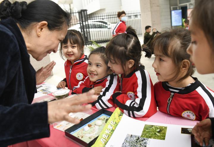 2024年4月16日,在新疆烏魯木齊市天山區南灣街街道,昌樂園幼兒園的小朋友在老師的講解下了解春蠶的生長過程。谷雨節氣將至,烏魯木齊市一些社區紛紛開展形式多樣的主題活動,讓市民了解有關谷雨節氣的知識,體驗傳統文化的魅力。