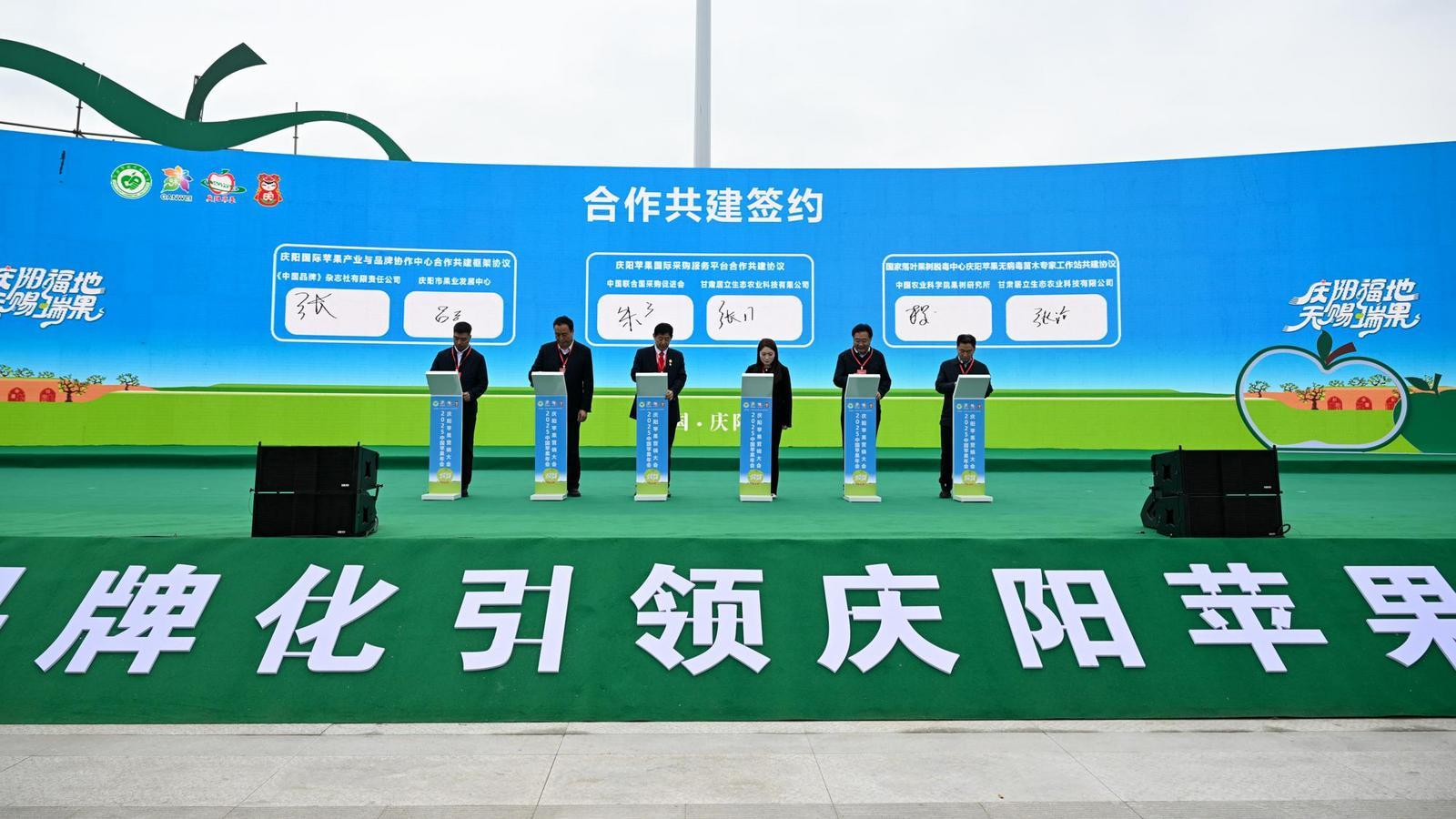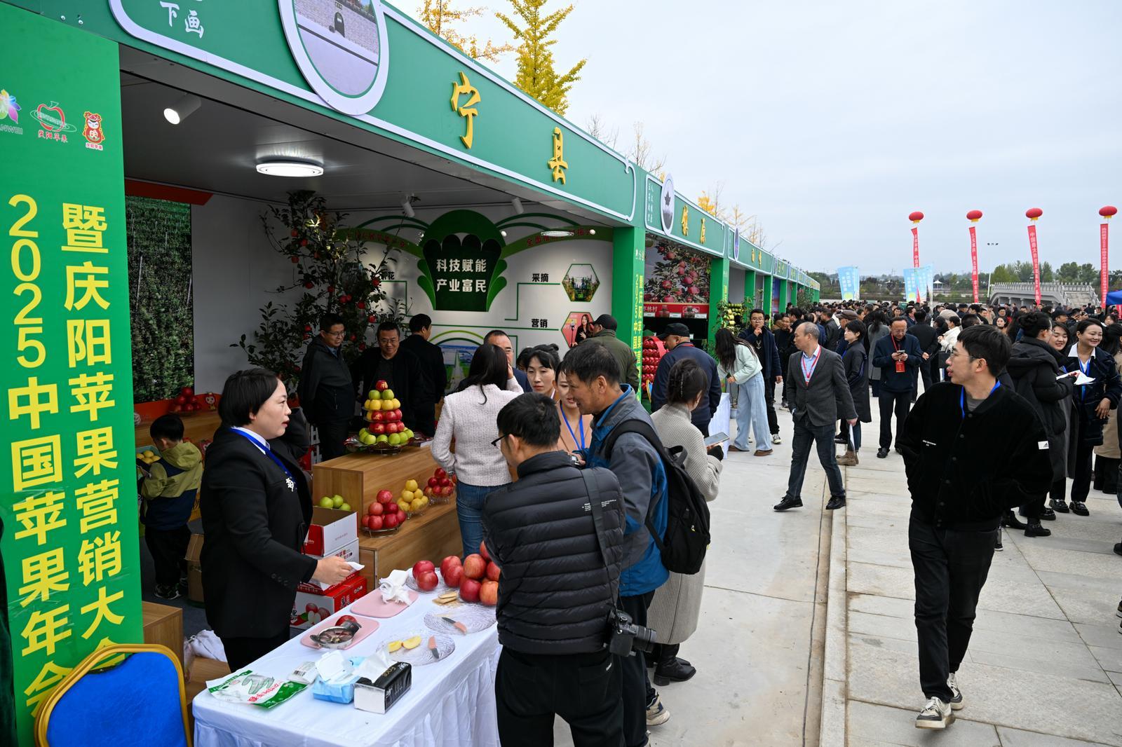 慶陽蘋果展示展銷區(qū)人頭攢動。