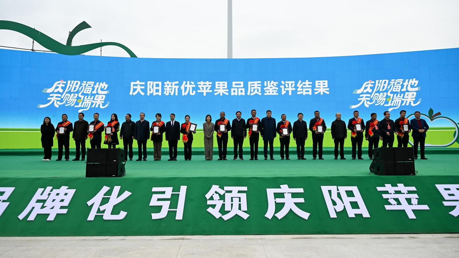 獲得慶陽新優(yōu)蘋果品質(zhì)鑒評金獎、銀獎、銅獎的企業(yè)、合作社和種植大戶上臺領(lǐng)獎。