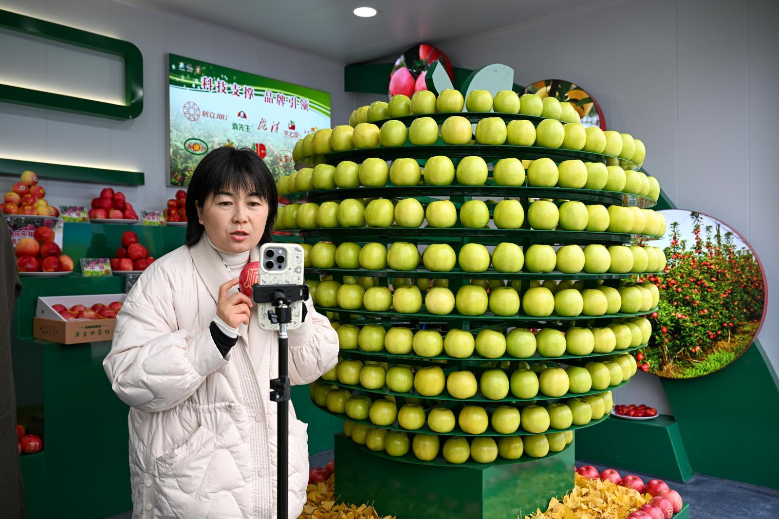 網(wǎng)紅達人直播推介慶陽蘋果。