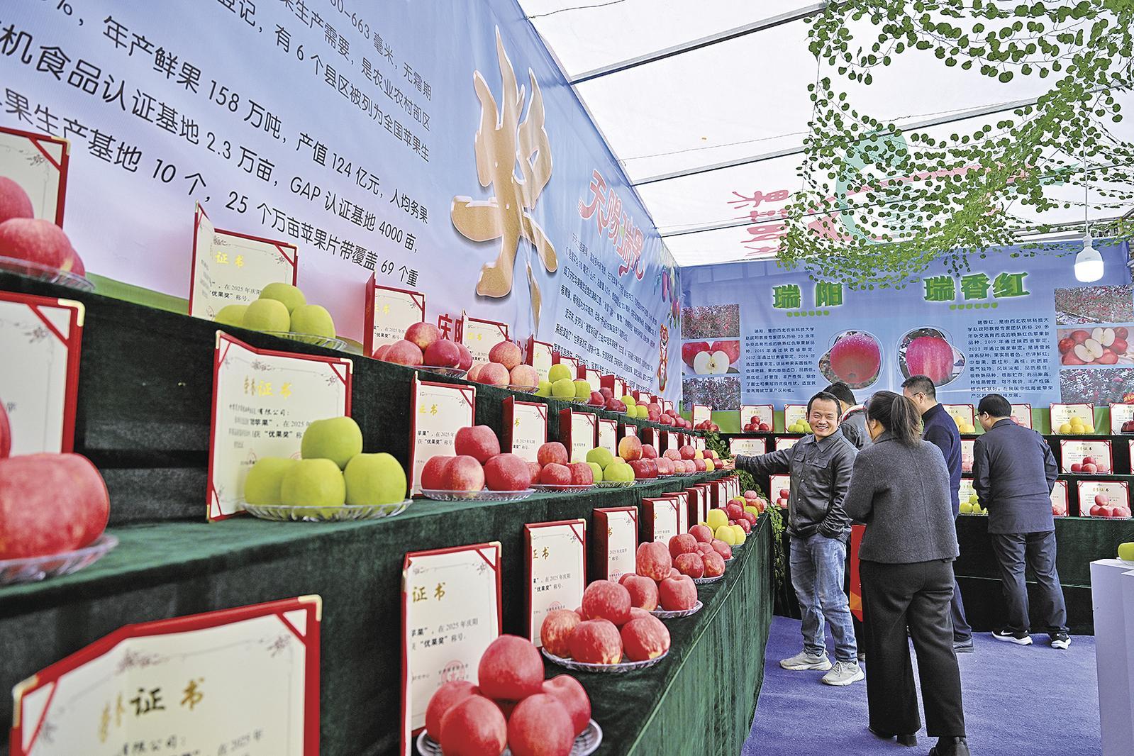 市民參觀獲得各類獎項的慶陽蘋果品種