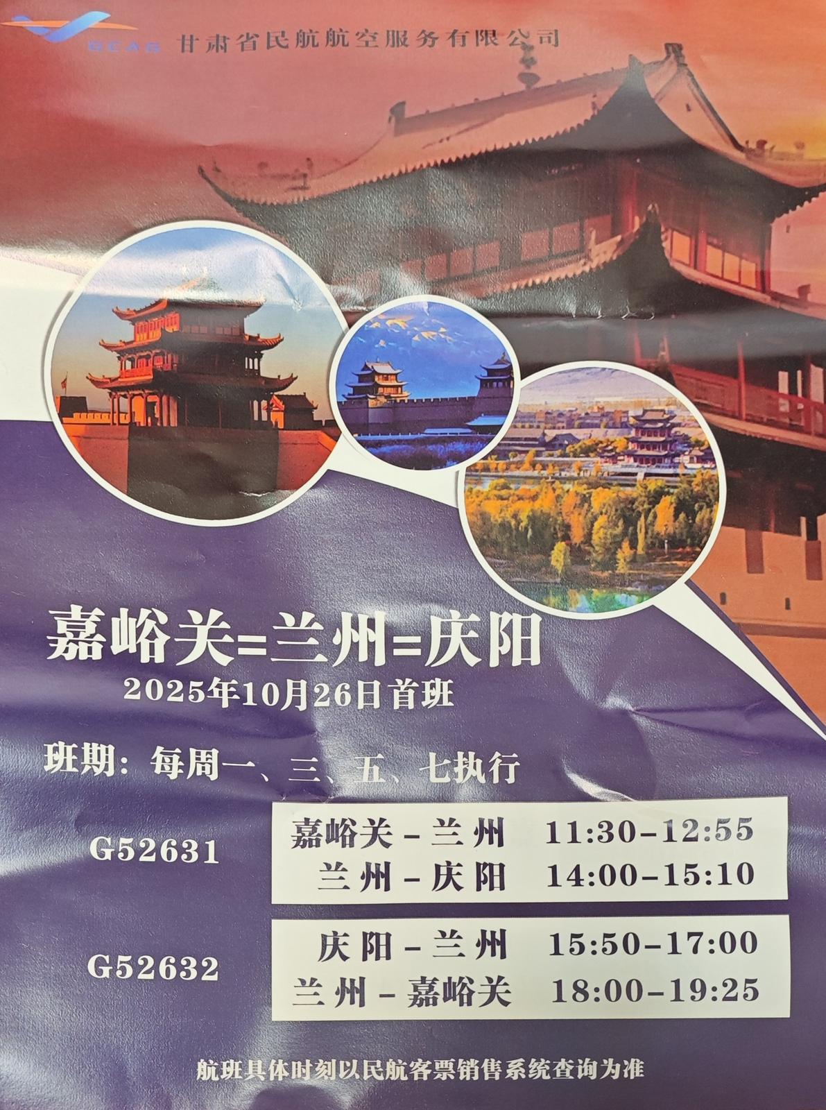 據悉,慶陽機場2025年冬航季將于10月26日至2026年3月28日執行,共計劃運營9條航線。其中,新增嘉峪關=蘭州=慶陽(每周1、3、5、7執飛)、蘭州=慶陽=敦煌(每周2、4、6執飛)2條航線,同步平移7條原有航線,進一步完善區域航線網絡。