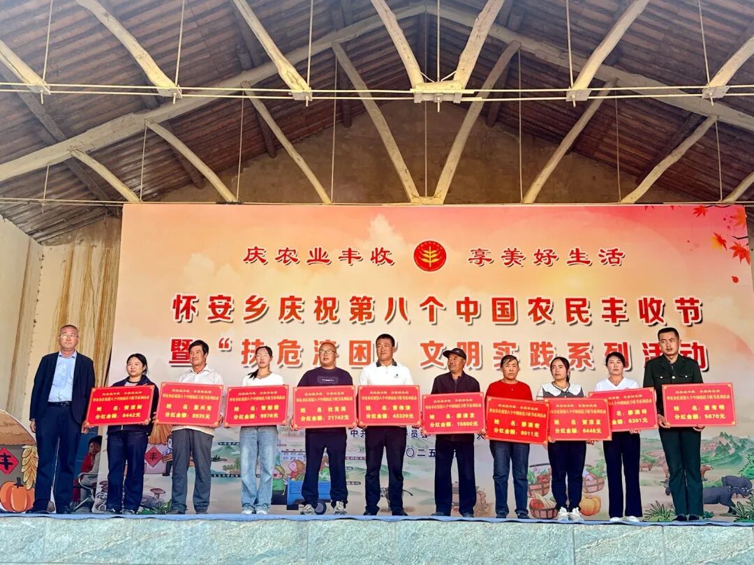 聯農帶農結碩果。深化“黨建+企業+農戶+合作社”模式,豐收節期間4家企業、1家合作社集中分紅173萬元,惠及86戶農戶、8個村集體。懷安村村民雷麗霞在現代循環農業示范園務工3個月增收1.2萬元,“家門口就業,顧家賺錢兩不誤!”她難掩喜悅。