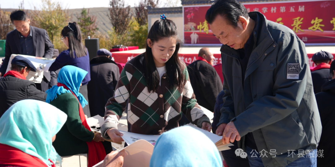 活動在熱烈的掌聲中拉開帷幕。在活動現場,各級領導嘉賓手持鮮紅的圍巾,逐一為在場的老年朋友輕輕佩戴,紅色的圍巾環繞在老人們頸間,傳遞著對老人們幸福安康的真摯祝愿。隨后,來自省書法家協會、省美術家協會的老師們現場送上了精心創作的書畫作品,一幅幅筆力遒勁的書法、一幅幅色彩明快的繪畫,或繪鄉村美景,或書敬老箴言,飽含著對安掌村發展的期許與對老年人的關懷。安掌村村委會負責人鄭重接過作品,現場掌聲不斷。
