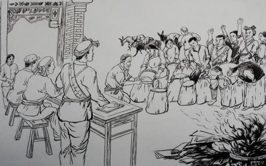 在全面建政的基礎上,陜甘邊區蘇維埃政府組織開展了轟轟烈烈的土地革命斗爭。為了調動農民群眾的革命熱情,政府按照各農戶的主要生活資料來源及其剝削與被剝削關系,在農民中劃定階級成分,沒收地主財產,一部分充公,一部分分給貧苦農民。同時,給地主家庭中參加勞動的成員留有一定數量維持生活的土地,富農則只沒收出租的土地,在分配時優先照顧紅軍家屬。既解決了根據地大多數貧苦農民的土地問題,又確保了邊區黨政軍的正常供給,也帶動整個蘇區掀起了參軍支前、保護根據地的群眾熱潮。