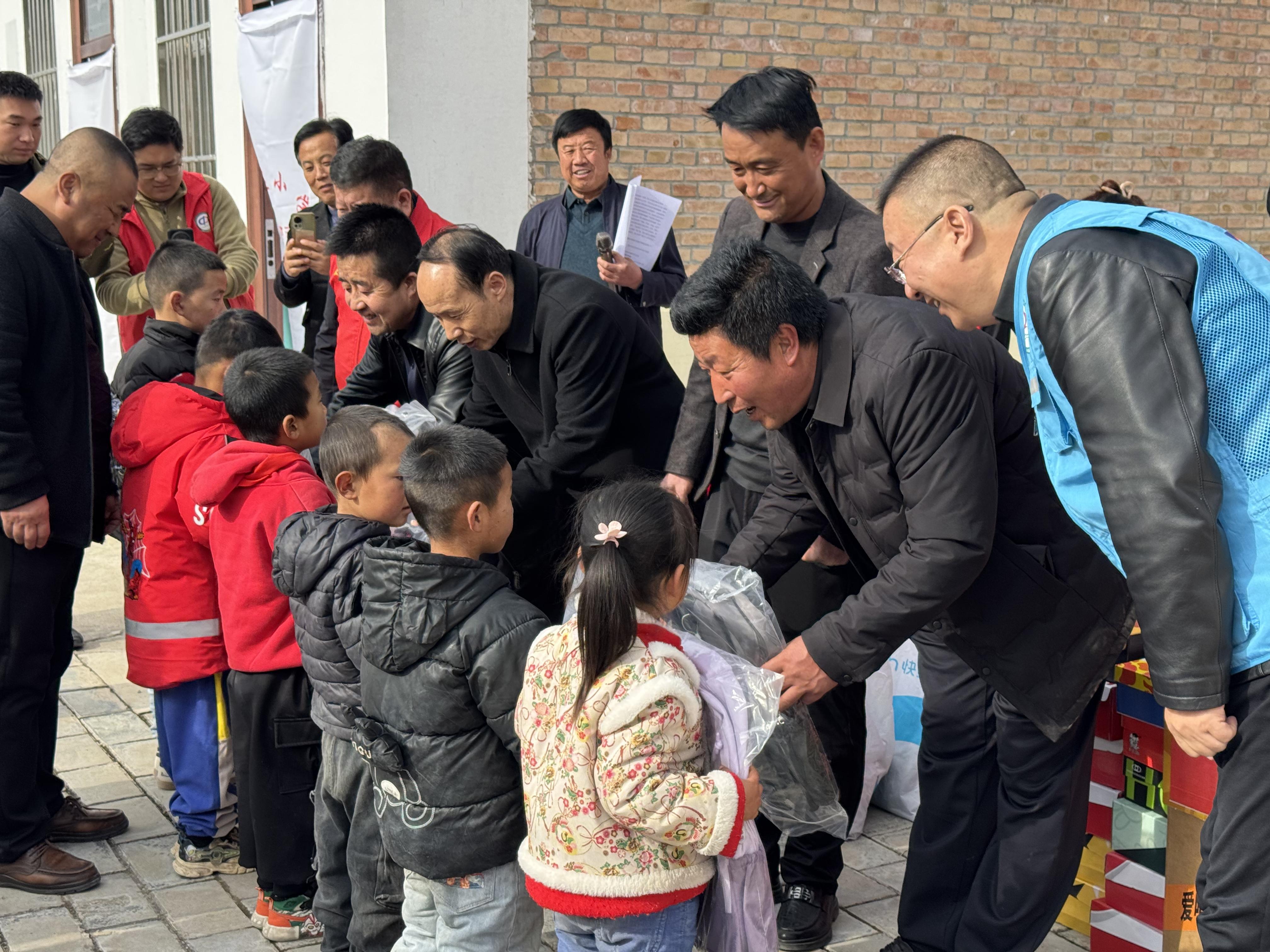 活動現場,盤克鎮宋莊小學12名小學生排成整齊的隊伍,眼神中充滿了期待,等待接收這份飽含深情和期望的愛心禮物。當工作人員將一件件漂亮的衣服、手套、書包和水杯發到孩子們手中時,他們一個個興高采烈,臉上洋溢著滿滿的笑容,這份特別的禮物就像冬日的暖陽溫暖了他們的心田,激勵著孩子們努力學習,奮發向上。