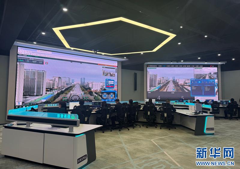 11月14日,在慶陽市公安局交管指揮大廳,工作人員使用無人機對城市主干道通行狀況進行常規巡檢。