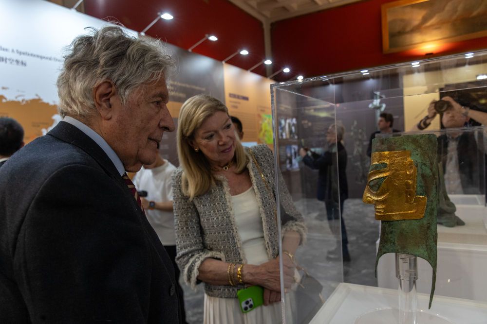 2025年5月13日,觀眾在希臘雅典新斯米爾尼市政博物館參觀“青銅之光——古蜀文明特展”。展覽通過精美的文物復制品、3D打印技術(shù)和圖文展示,生動呈現(xiàn)以三星堆—金沙遺址為代表的古蜀文明,吸引眾多當?shù)孛癖娗皝韰⒂^。