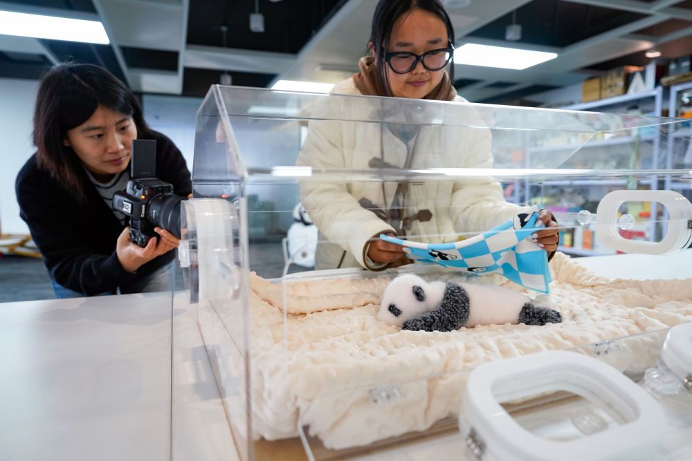 2024年11月20日,在位于四川省成都市的“熊貓工廠”總部,工作人員在為22日齡新生大熊貓幼崽高仿真玩偶產(chǎn)品拍攝短視頻。依托我國傳統(tǒng)非遺裘皮制作技藝,以不同年齡段的“和花”“萌蘭”“香香”“福寶”等“網(wǎng)紅”大熊貓為原型,運用3D建模等技術(shù)開發(fā)出高仿真、超仿真玩偶,當?shù)仄髽I(yè)已在全球50多個國家和地區(qū)累計銷售超過5萬只定制仿真大熊貓,也在短短幾年內(nèi)成長為年營收破千萬元的企業(yè)。