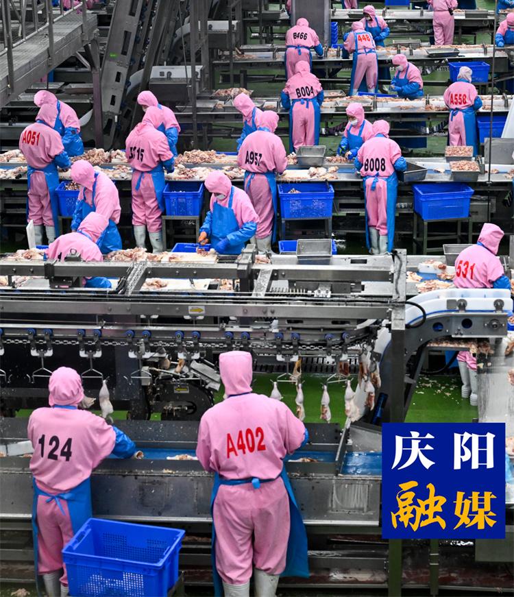 在鎮原縣金龍工業集中區,甘肅圣越農牧發展有限公司的肉雞加工車間機器轟鳴。“我們的白羽肉雞通過了多項權威認證,‘一只雞串起的產業鏈’帶動了上下游多個產業,80%的職工是鎮原籍,平均月薪6500元。”公司安全環保部部長張興環的話語里滿是自豪。
