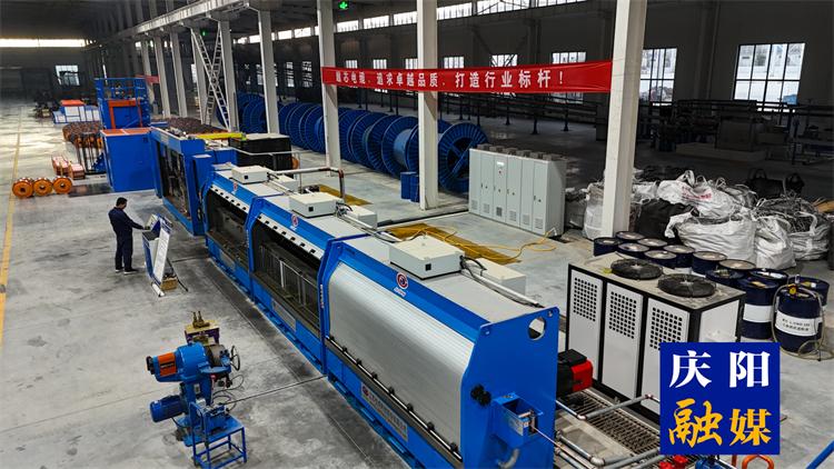 在慶城縣驛馬工業(yè)集中區(qū),慶陽(yáng)超芯電線(xiàn)電纜有限公司的生產(chǎn)車(chē)間內(nèi),電纜在流水線(xiàn)上有序流轉(zhuǎn)。