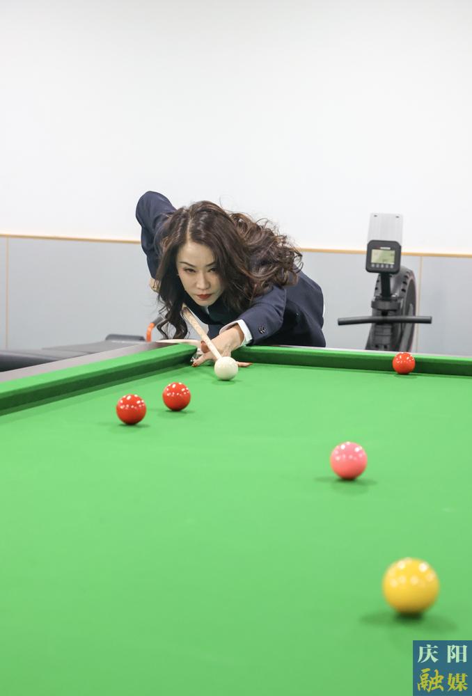 職工在健身室打臺(tái)球。