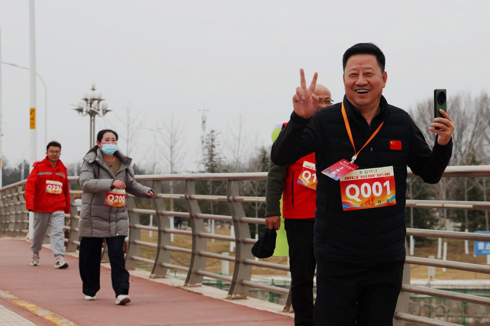慶陽網訊(慶陽融媒記者 趙彩霞 俄少飛 見習記者 李洺銳)12月30日,“中國人壽杯”慶陽市第二屆“慶元旦 迎新春”百企千人健康跑活動在海綿運動公園活力開跑。來自全市93個企業和單位的562名跑步愛好者齊聚賽道,以矯健的步伐共同邁進嶄新一年。