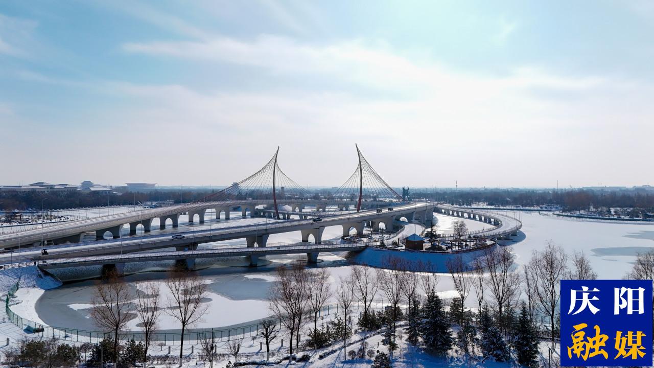 彩虹橋的橋身橫跨冰封的水面,利落的線條在晴光下勾勒出城市交通的靈動脈絡(luò);隴東風(fēng)情園的仿古建筑紅墻飛檐覆雪而立,古典韻味在冰雪映襯中愈發(fā)醇厚。現(xiàn)代建筑的蓬勃生機(jī)與傳統(tǒng)建筑的雅致底蘊在此交融,晴雪為媒,讓慶陽的城市風(fēng)貌既有著時代發(fā)展的鮮活節(jié)奏,又留存著古韻悠悠的獨特氣質(zhì)。